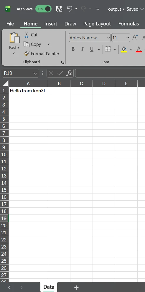 worksheet["A1"].Value = "Hello from IronXL";