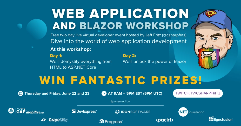 Iron Software freut sich, die Unterstützung eines Webanwendungs- und Blazor-Workshops, der von Jeff Fritz präsentiert wird, bekannt zu geben. Diese zweitägige Veranstaltung soll Entwicklern die grundlegenden Fähigkeiten vermitteln, die sie für den Aufbau robuster Websites benötigen. Darüber hinaus haben die Teilnehmer die Möglichkeit, die Leistungsfähigkeit von Blazor zu erkunden, einer der beliebtesten Technologien zur Berichtserstellung in IronPDF.