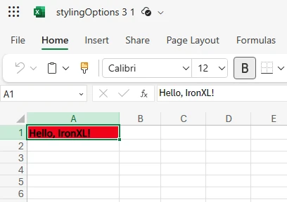 worksheet["A1"].Value = "Hello, IronXL!"