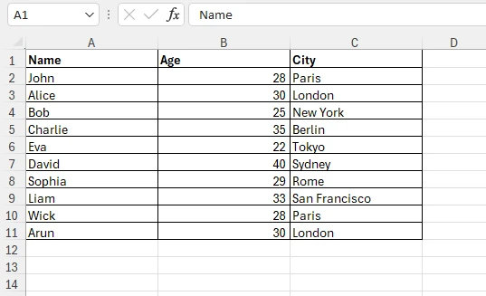 So erstellen Sie ein Word-Dokument aus Excel-Daten in Python: Abbildung 2 – Beispiel-Excel