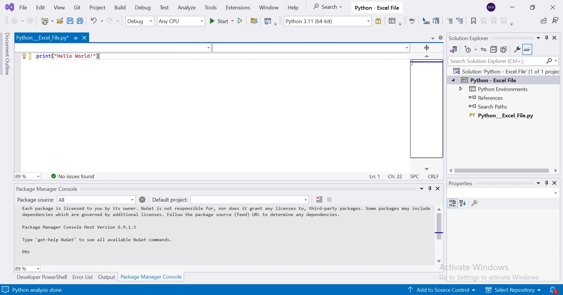 So bearbeiten Sie Excel-Dateien in Python: Abbildung 1 – Neues Projekt