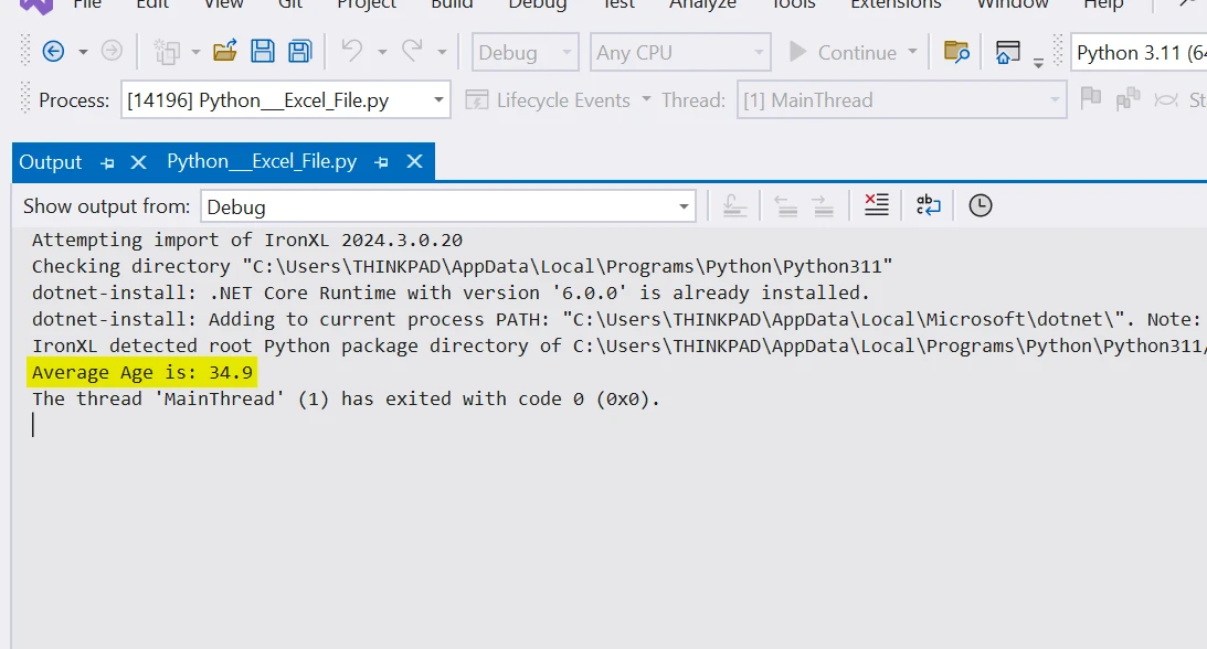 Der obige Code berechnet den Mittelwert der numerischen Zellen im angegebenen Bereich "F2:F11" im Excel-Arbeitsblatt. Die Funktionen von IronXL ermöglichen die nahtlose Berechnung statistischer Kennzahlen direkt in Excel-Dateien und verbessern so die Arbeitsabläufe der Datenanalyse. Durch einfaches Aufrufen der Avg() -Methode auf den Bereich berechnet IronXL effizient das Durchschnittsalter der Kunden und demonstriert damit seine Fähigkeit, komplexe Berechnungen in Excel-Dokumenten zu vereinfachen.