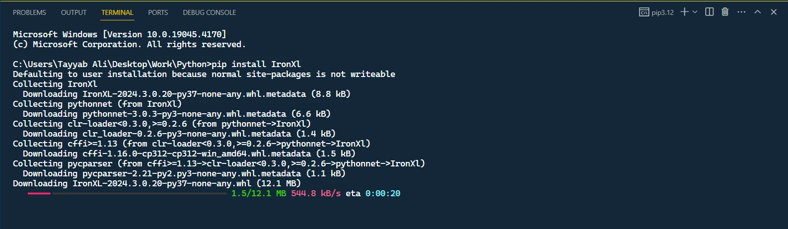 1. Installieren Sie die IronXL-Bibliothek mit pip.