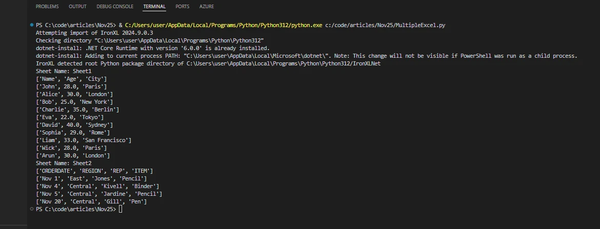 IronXL ist eine .NET-basierte Bibliothek, die das Lesen und Schreiben von Excel-Dateien mit verschiedenen Funktionen ermöglicht, wie z. B. die Bearbeitung mehrerer Tabellenblätter, komplexe Formatierungen und die Unterstützung verschiedener Excel-Dateiformate. In diesem Artikel zeigen wir Ihnen, wie Sie mit IronXL Python Excel-Dateien mit mehreren Tabellenblättern lesen können und demonstrieren einige seiner wichtigsten Funktionen und Möglichkeiten.
