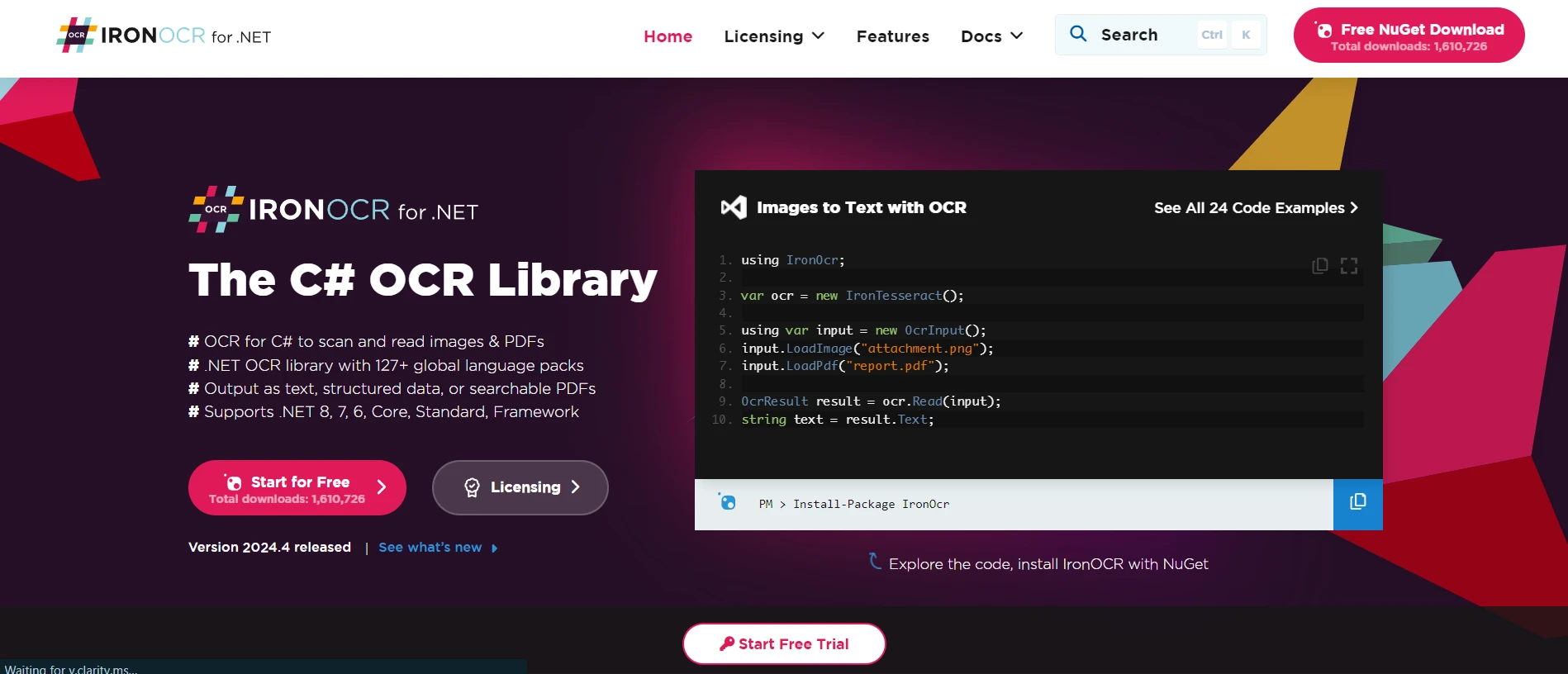 - IronOCR : Extrahiert Text aus Bildern und PDFs mit hoher Genauigkeit und unterstützt mehrere Sprachen.