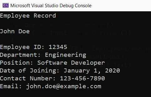 Das Bauunternehmen hat im Laufe der Jahre eine beträchtliche Menge an Papierdokumenten angesammelt, darunter Mitarbeiterakten, Zertifizierungen und historische Projektdokumente. Um diese Datensätze zu digitalisieren, benötigt Sarah ein zuverlässiges OCR-Tool. IronOCR ermöglicht es der Software, diese Papierdokumente zu scannen und in durchsuchbare digitale Dateien umzuwandeln. Diese Funktion ist entscheidend für den schnellen Zugriff auf Mitarbeiterinformationen und gewährleistet, dass alle Datensätze problemlos abrufbar sind.