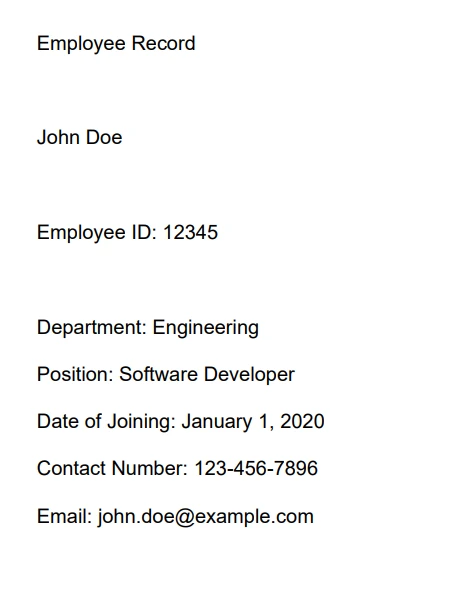 Sarahs Team aktualisiert und verteilt regelmäßig verschiedene Dokumente, darunter Verträge für neue Mitarbeiter, projektspezifische Sicherheitsprotokolle und Schulungsmaterialien. Mithilfe von IronPDF kann die HR-Software die Erstellung und Bearbeitung dieser PDF-Dokumente automatisieren. Dadurch wird sichergestellt, dass alle Dokumente standardisiert, professionell formatiert und leicht verteilbar sind. Durch die Automatisierung dieser Aufgaben kann das Team erheblich Zeit sparen und das Fehlerrisiko verringern.