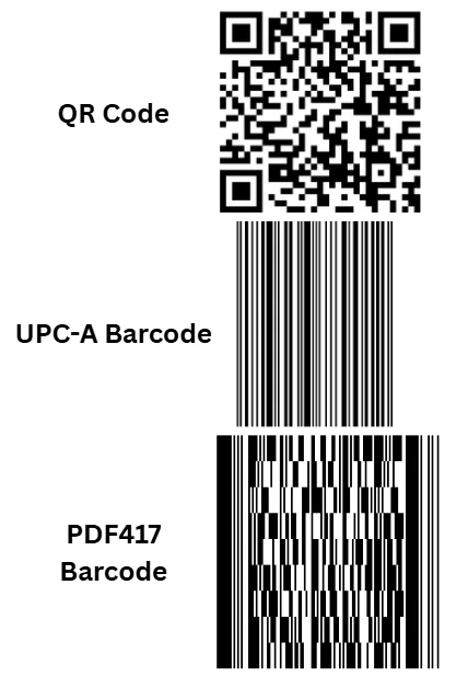 - PDF417: Adecuado para tarjetas de identificación y documentos que necesitan almacenamiento de información adicional.