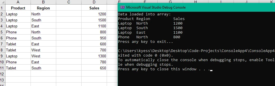 ! VB .NET: Leer un archivo de Excel en una matriz: Comparación entre IronXL y Microsoft Interop: Imagen 2 - Salida de IronXL