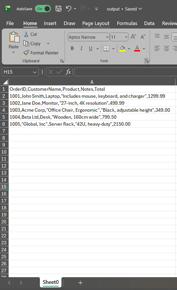 Más allá de la conversión de formatos, este flujo de trabajo permite escenarios de enriquecimiento de datos en los que los extractos CSV sin procesar se transforman en informes de Excel pulidos con una marca coherente, campos calculados y un formato de columna adecuado, todo ello generado mediante programación sin trabajo manual de Excel.