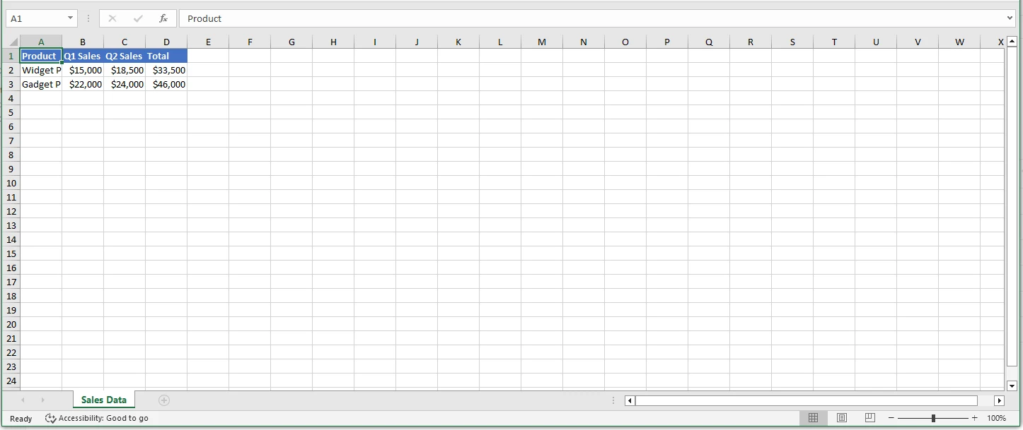 worksheet["A1"].Value = "Product";