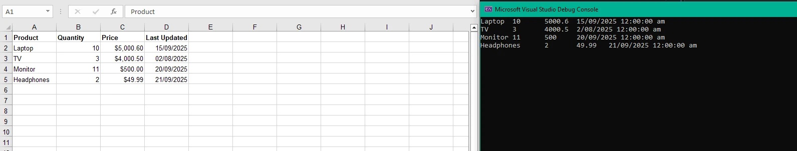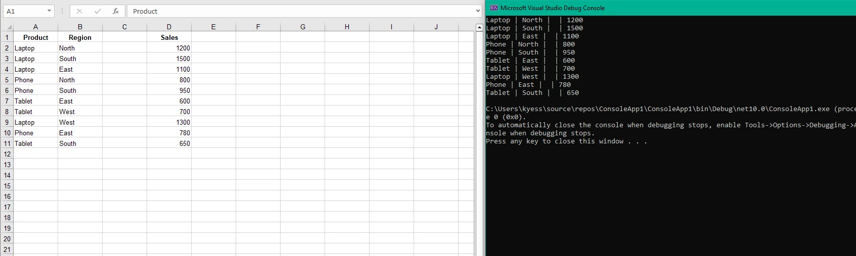 Esta flexibilidad hace que IronXL sea ideal para procesar archivos de hojas de cálculo de Excel independientemente de su estructura. A diferencia del paquete EPPlus o los métodos tradicionales que requieren nuevas instancias de OleDbDataAdapter, IronXL maneja la conversión en una sola llamada de método. La biblioteca admite .NET Core, .NET Framework y la implementación multiplataforma sin necesidad de instalar Microsoft Excel.