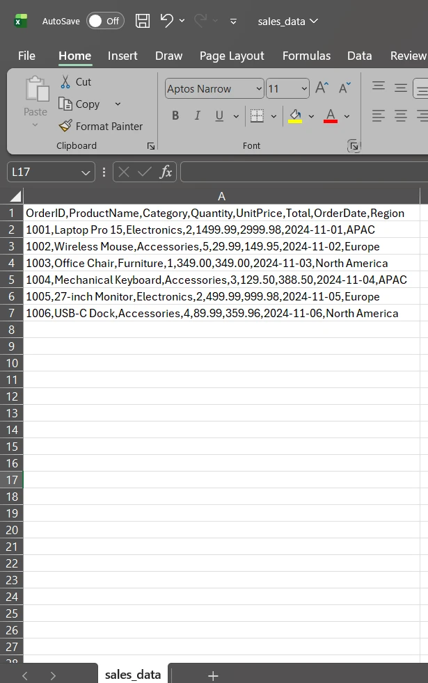 Leer CSV .NET: The Simplest C# Approach Using IronXL: Image 2 - Sample CSV Input