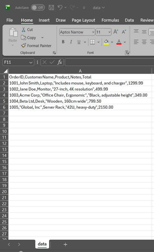 Leer CSV .NET: The Simplest C# Approach Using IronXL: Image 8 - CSV Data