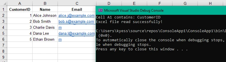 Console.WriteLine("Excel file read successfully!")