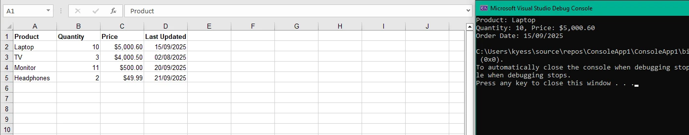 Console.WriteLine("Excel file read successfully!");