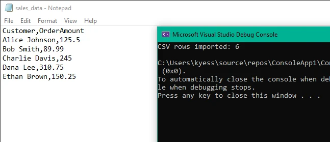 Console.WriteLine($"CSV rows imported: {csvSheet.RowCount}")