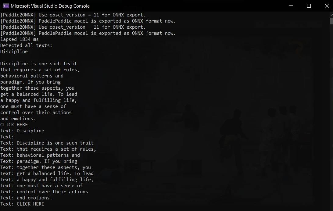 Paddle OCR vs Tesseract (Comparación de Características OCR): Figura 6 - Salida de consola del ejemplo de código anterior