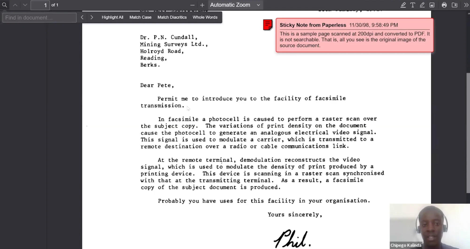 Chipego mostró cómo IronOCR convierte un PDF escaneado que no permite búsquedas en un PDF que sí permite búsquedas , habilitando instantáneamente capacidades de búsqueda de texto completo. El proceso implica varios pasos sofisticados: