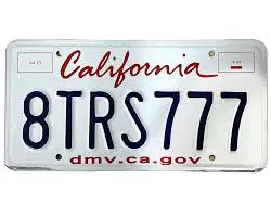 Matrícula de California mostrando '8TRS777' - ejemplo de demostración de lectura de matrículas