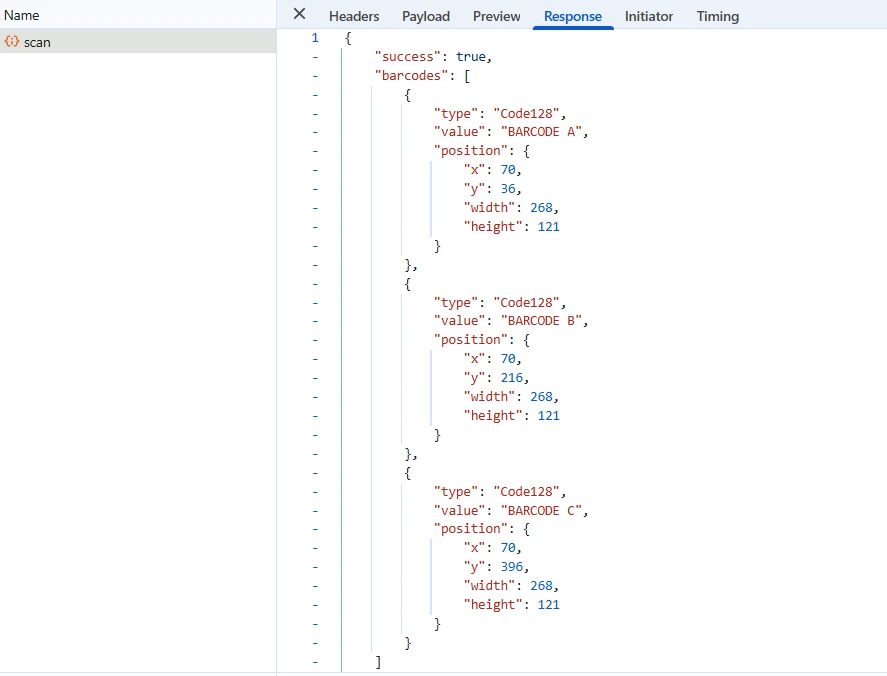 Implémentez maintenant le contrôleur backend avec des validations de sécurité et améliorez le traitement pour votre lecteur de codes-barres ASP.NET, utilisez des formats de données de sortie pour une gestion flexible des résultats. Envisagez la mise en œuvre d' une prévention des faux positifs et la prise en charge de la norme GS1-128 pour les exigences spécifiques en matière de codes-barres :