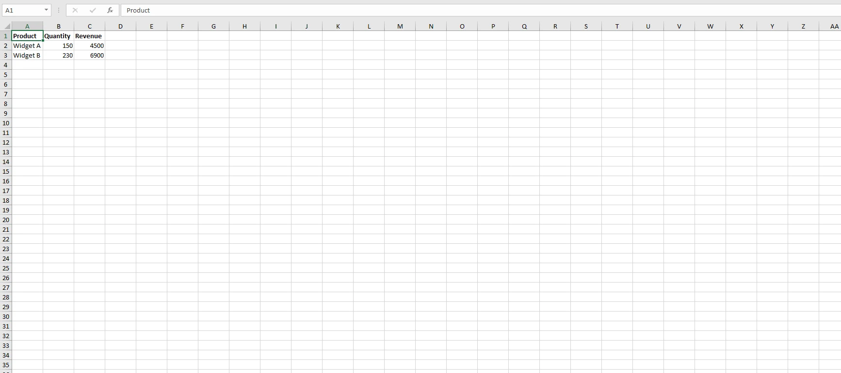 worksheet["A2"].Value = "Widget A";