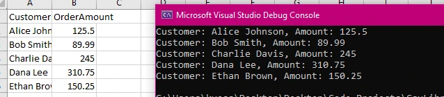Console.WriteLine($"Customer: {row.Columns[0].Value}, Amount: {row.Columns[1].Value}");