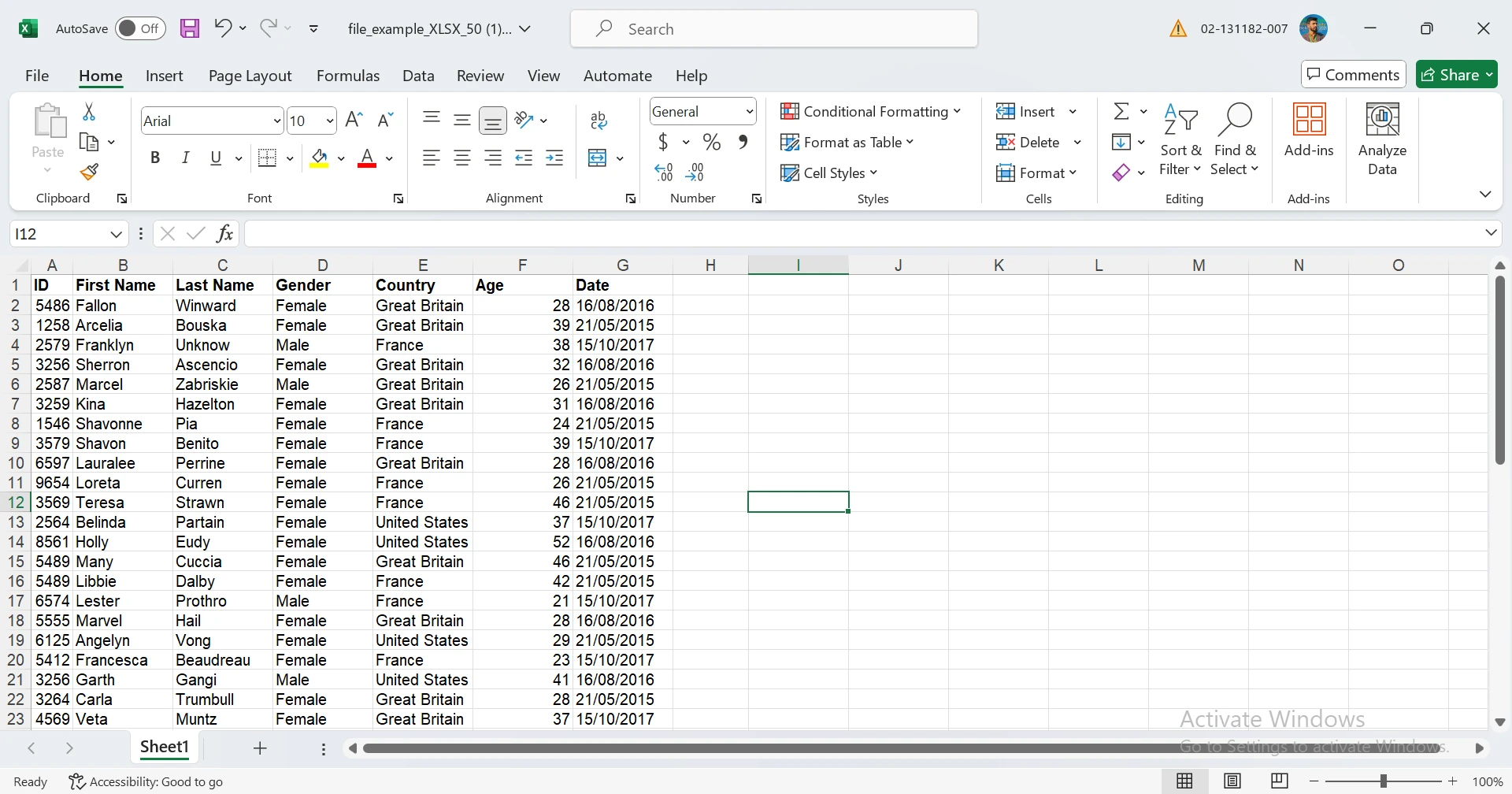 J'utiliserai le fichier Excel suivant tout au long de ce tutoriel.