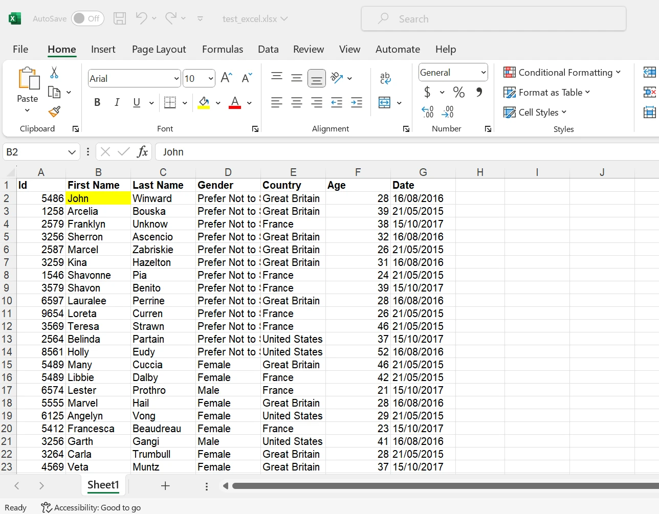 sheet["B2"].Value = "John";