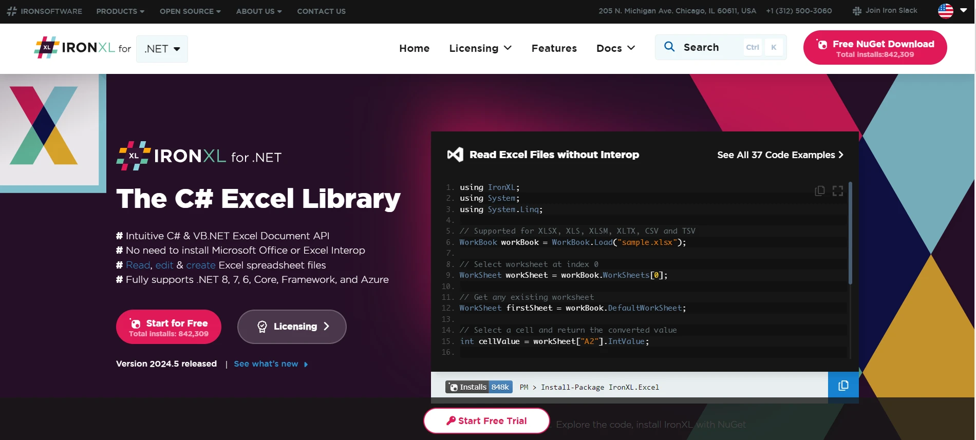 IronXL ne nécessite pas l'installation de Microsoft Excel sur l'ordinateur hébergeant l'application, contrairement à certaines autres bibliothèques. C'est pourquoi c'est parfait pour les applications côté serveur.