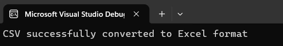 Console.WriteLine("CSV successfully converted to Excel format");