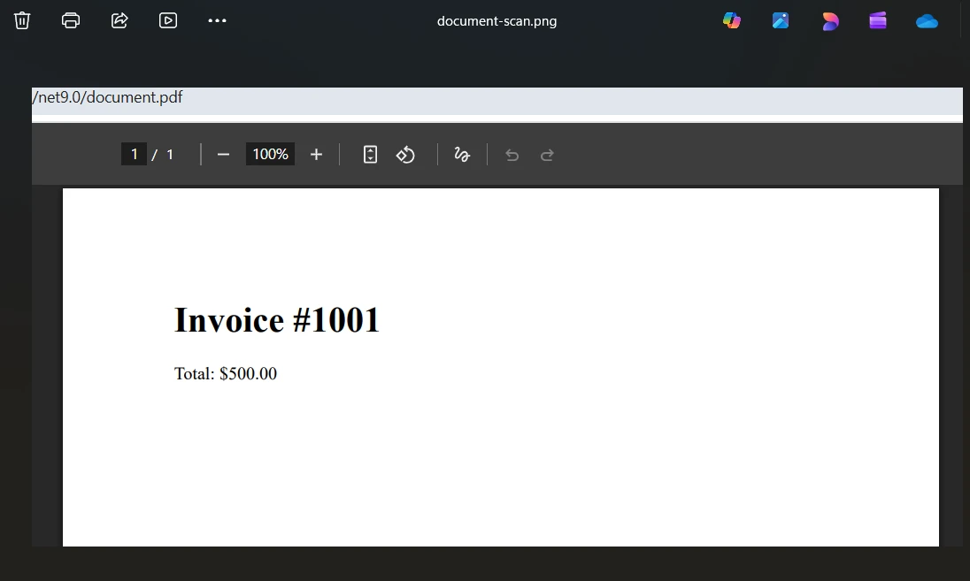L'extraction de texte OCR PDF fonctionne parfaitement avec les mêmes modèles d'API. La bibliothèque gère à la fois les PDF natifs et les images de documents numérisés intégrés dans des conteneurs PDF :
