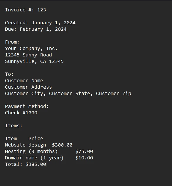 Comparaison d'outils Factures OCR Open Source (Gratuits & Payants) : Figure 4 - Sortie utilisant le code précédent pour extraire le texte d'une facture d'exemple