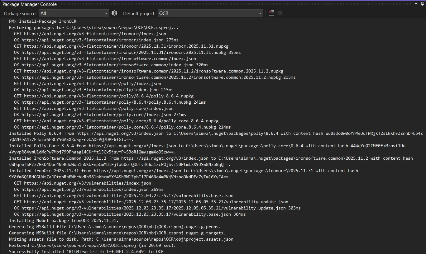 IronOCR est entièrement compatible avec les environnements C# et .NET, ce qui en fait un outil polyvalent et puissant pour les développeurs travaillant dans ces cadres.