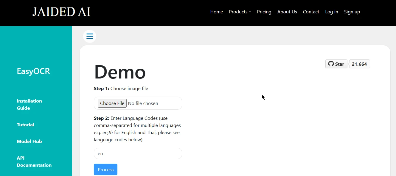 Meilleurs logiciels de reconnaissance optique de caractères (comparatif OCR) : Figure 1 - Page de démonstration d'EasyOCR