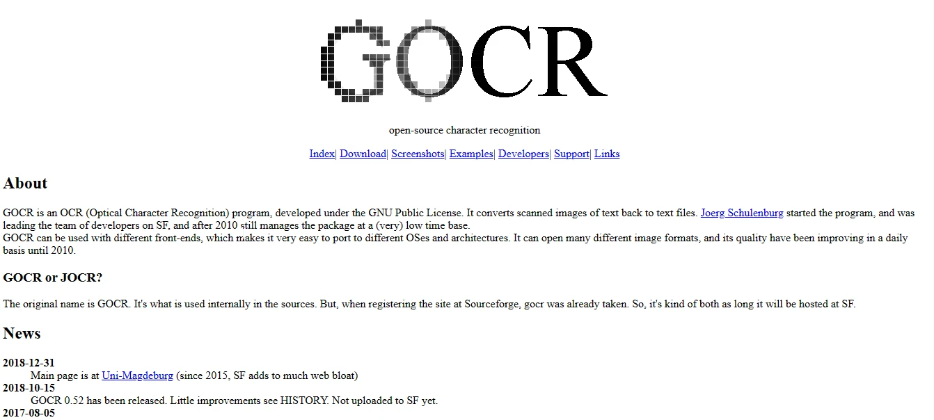 Meilleurs logiciels de reconnaissance optique de caractères (comparaison OCR) : Figure 2 - Page d'accueil de GOCR