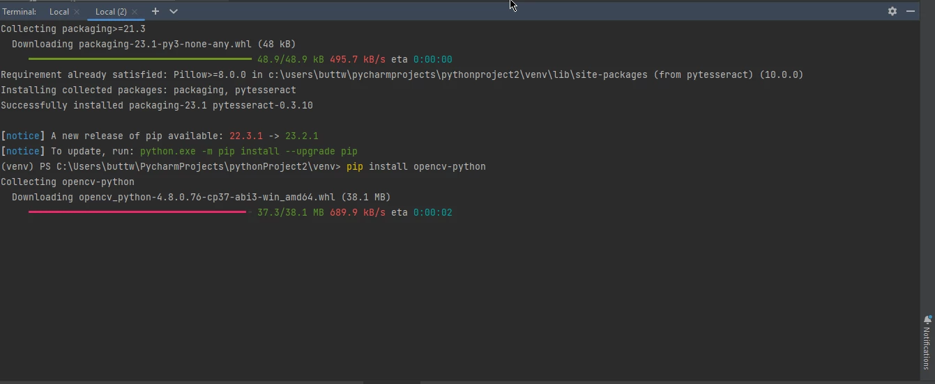 pip install pytesseract opencv-python