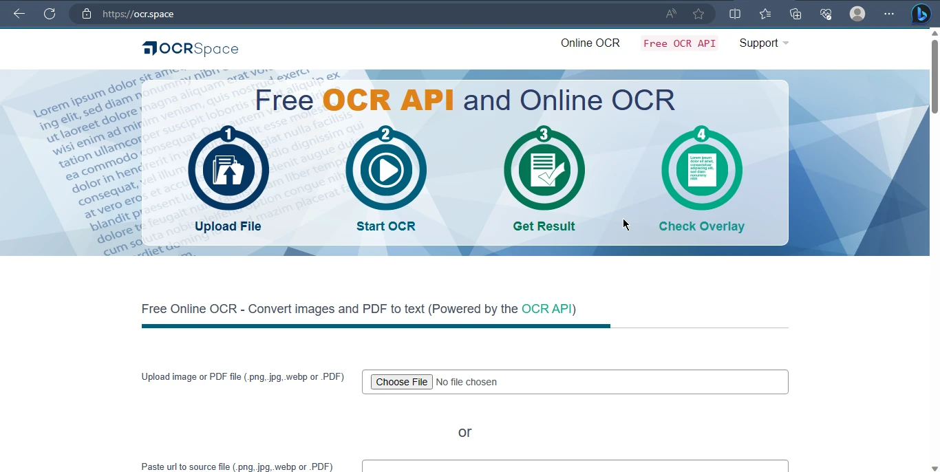 1. Accédez au site Web OCR.space : Ouvrez votre navigateur Web préféré et accédez au site Web OCR.space à l' adresse https://ocr.space/ .