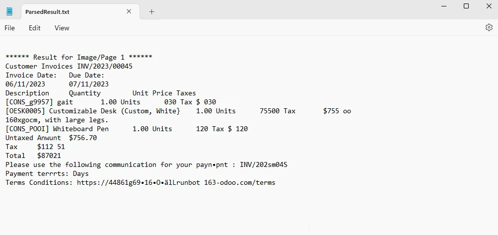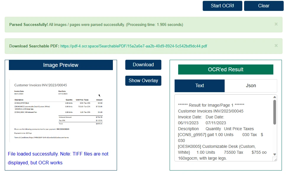 2. Vérification et téléchargement des résultats : Une fois la reconnaissance optique de caractères (OCR) terminée, le texte extrait s'affichera sur le site web. Vérifiez son exactitude et effectuez les corrections nécessaires par saisie manuelle.