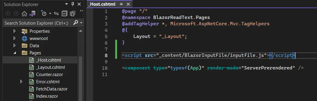 Comment lire du texte à partir d'une image dans Blazor, Figure 5 : Naviguer vers le fichier _Host.cshtml à partir de l'explorateur de solutions Naviguer vers le fichier _Host.cshtml à partir de l'explorateur de solutions