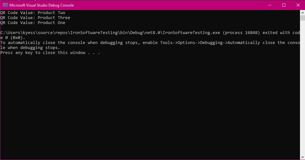 Comment lire un code QR à partir d'une image en C# : Figure 5 - Sortie de la valeur du code QR