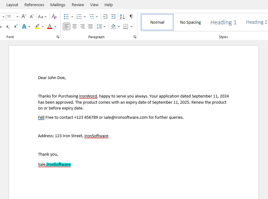 IronWord assure la cohérence en permettant aux développeurs d'utiliser des modèles Word qui maintiennent le même format et la même mise en page sur plusieurs documents, réduisant le risque d'erreurs humaines.