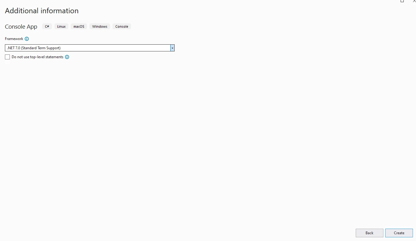 Sélectionnez ensuite la version .NET souhaitée. Il est toujours préférable de choisir la dernière version disponible, mais si votre projet a des exigences spécifiques, utilisez la version .NET nécessaire.