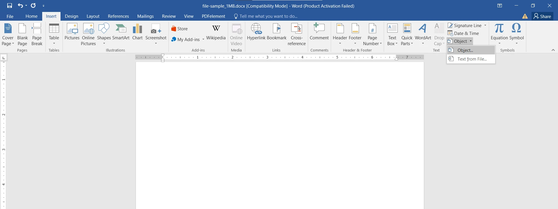 2. Insertion d'un PDF en tant qu'objet dans Word