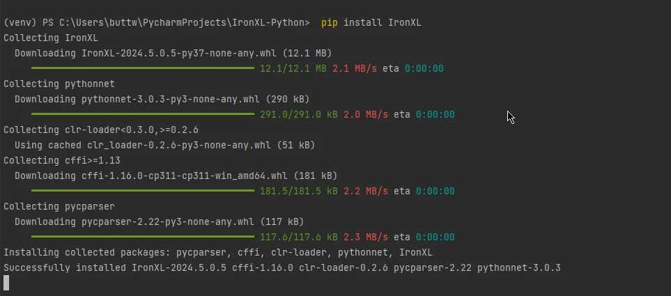 Pour installer IronXL et exécuter la fonction Python, nous pouvons utiliser pip, le gestionnaire de paquets Python. Il vous suffit d'exécuter la commande pip install ironxl dans votre terminal ou invite de commandes, et IronXL sera installé dans votre environnement de code Python.