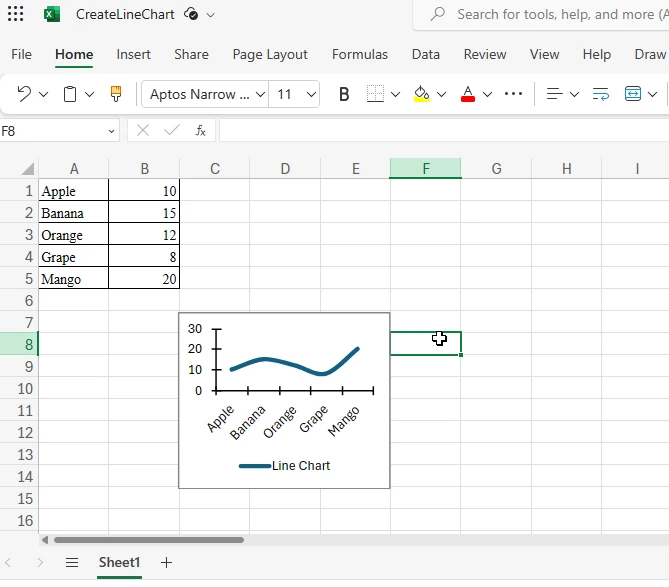 chart = worksheet.CreateChart(ChartType.Line, 10, 10, 18, 20)