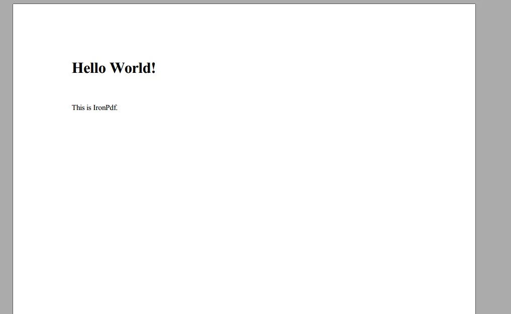 Dim html = "<h1>Hello World!</h1><br><p>This is IronPdf.</p>"