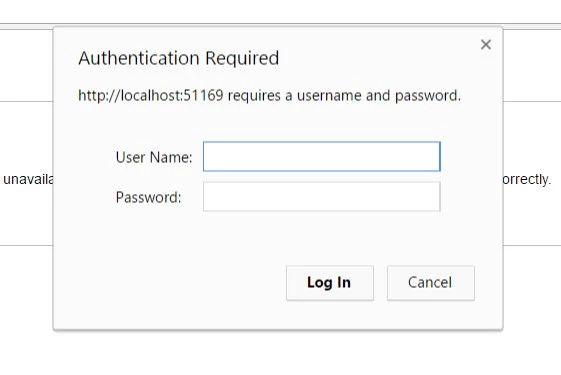 L'accès à http://localhost:51169/Invoice affiche le formulaire " Authentification requise " :