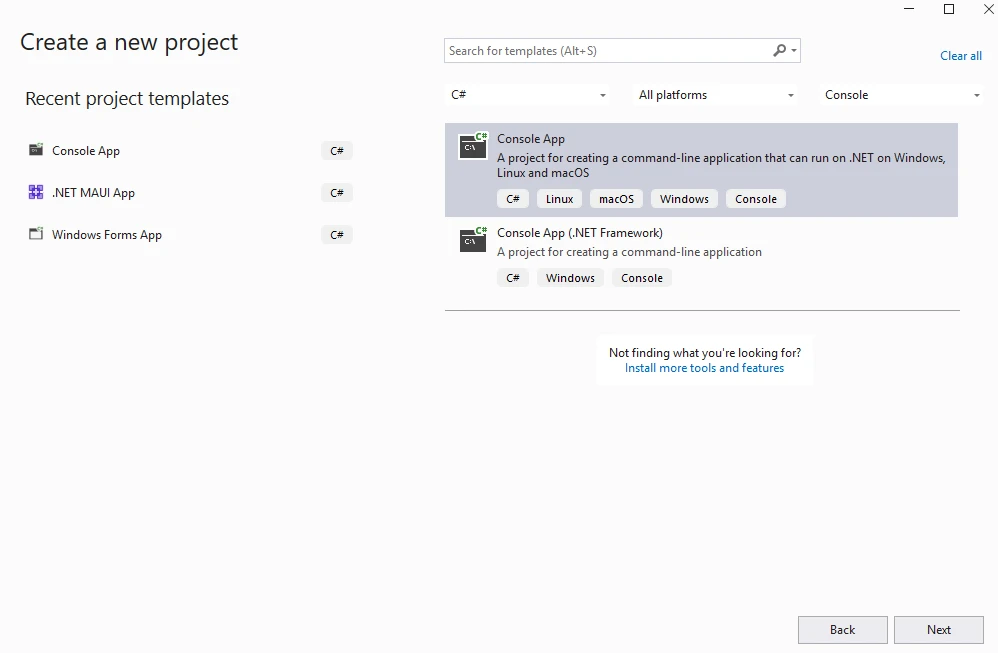 Pour commencer, ouvrez Visual Studio et créez un nouveau projet comme ci-dessous :