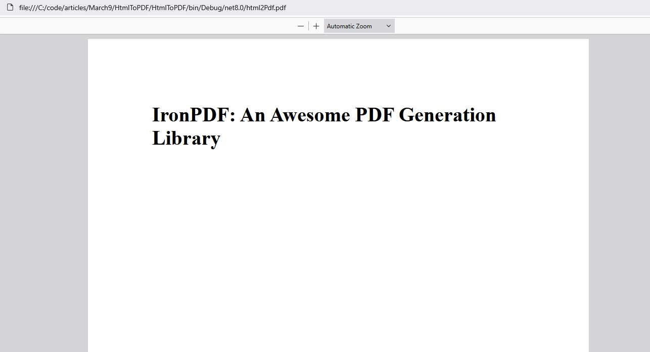 <h1>IronPDF: An Awesome PDF Generation Library</h1>